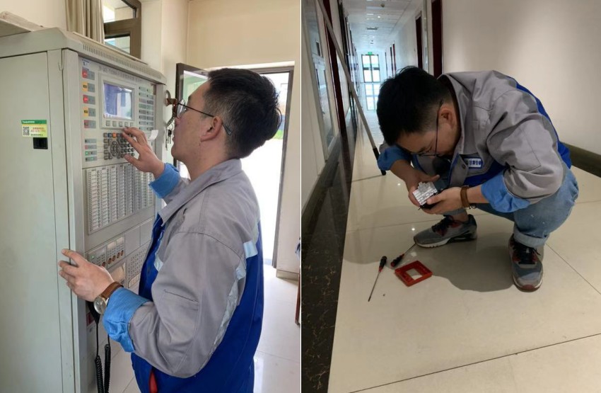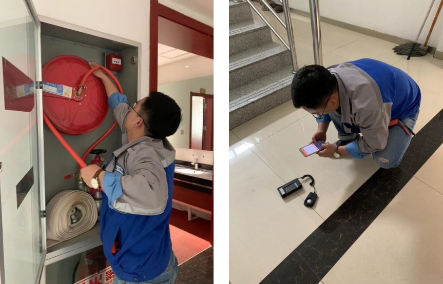 •   2019年7月11日,甘肅安卓工程技術有限公司消防事業部技術人員楊乾儒、達朝旭認真貫徹《消防法》、《社會消防技術服務管理規定》,根據《火災自動報警系統設計規范》、《建筑設計防火規范》、《給水及消火栓設計規范》、《建筑滅火器配置設計規范GB50140-2005》的要求,對紅古區人民政府辦公大樓進行消防設施維保。