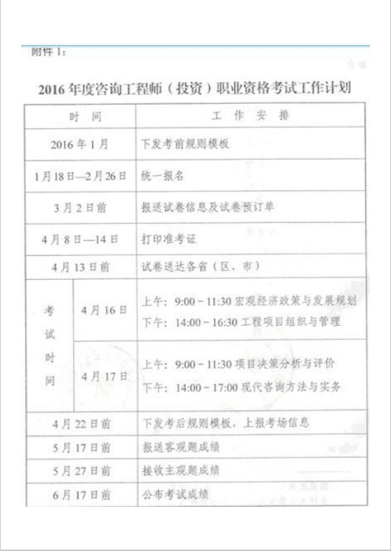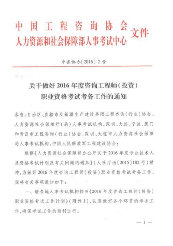 【工作通知】2016年咨詢工程師考務工作通知