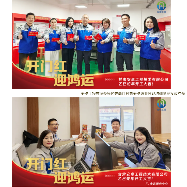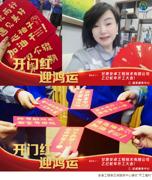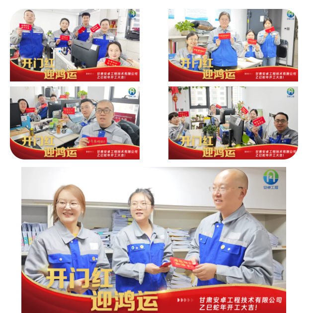 2月10日,正月十三,在這個(gè)洋溢著喜慶與祥和的美好日子里,甘肅安卓工程技術(shù)有限公司迎來了充滿生機(jī)與活力的開工大吉。全體員工精神抖擻,以踔厲奮發(fā)、篤行不怠的昂揚(yáng)姿態(tài),滿懷激情地迎接這一開工儀式,共同翻開了蛇年的嶄新篇章。公司董事長龔復(fù)學(xué)、副董事長田苗、總經(jīng)理趙童潔、事業(yè)合伙人代表等高層領(lǐng)導(dǎo)親臨每一間辦公室,為員工送上“開門紅”紅包,寓意新的一年紅紅火火、福氣滿滿。