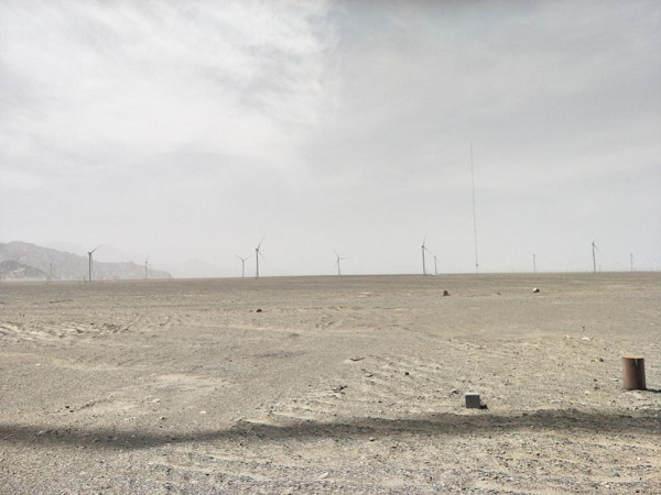 都蘭西北水電新能源有限責任公司西北水電樂邦諾木洪風電場,裝機容量49.5MW。場址區海拔高度在2880~2980m之間,場址區處于山前沖洪積草原,地貌類型為荒漠沙地,場址區地勢較平坦、開闊,不存在滑坡、不穩定體、泥石流、移動沙丘等不良物理地址現象,適宜修建風電場工程,風電場北側為109國道,交通便利。