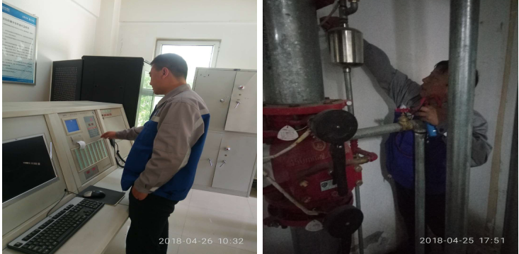 2018年4月26日我公司消防事業部技術人員前往甘肅省白銀市,對中國移動通信集團白銀移動公司進行消防維護保養,主要對消防維修水箱浮球閥,水泵房壓力開關故障,及消防主機聯動操作和使用方法進行維護保養。